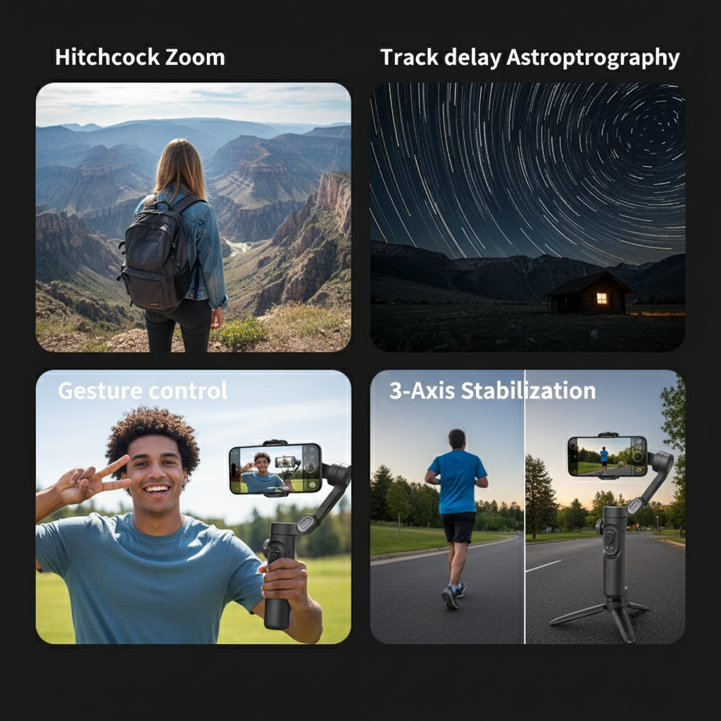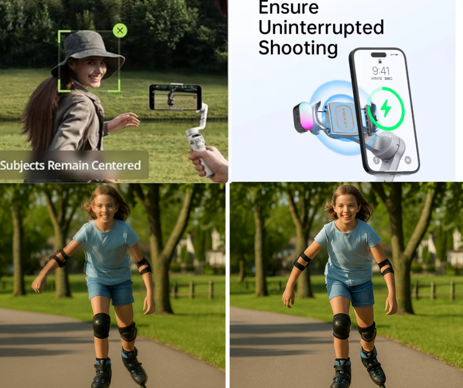 Goodbye jitter, hello cinematic. High-torque 3-axis stabilization turns everyday clips into -smooth, pro-looking footage—without learning a new rig.