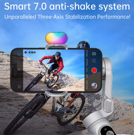 Tuned 3-axis stabilization smooths real-world walking shots and quick turns. High-torque motors keep footage steady—even with big phones and cases.